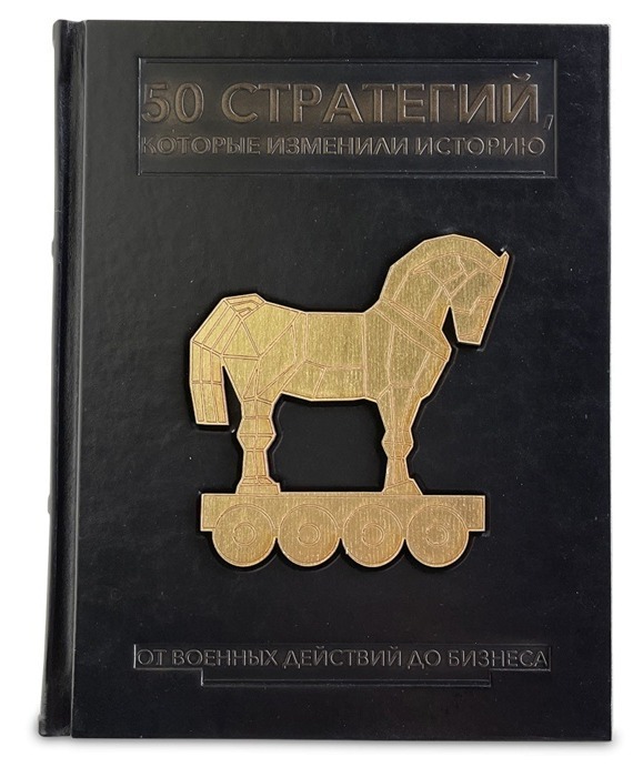 Подарочное издание "50 стратегий, которые изменили историю" в кожаном переплете — это уникальный том, который сочетает в себе элегантность и глубокий анализ исторических событий. Оформленное с художественной накладкой из дерева в виде троянского коня и затертым золотым тиснением, это издание привлекает внимание и становится настоящим произведением искусства.