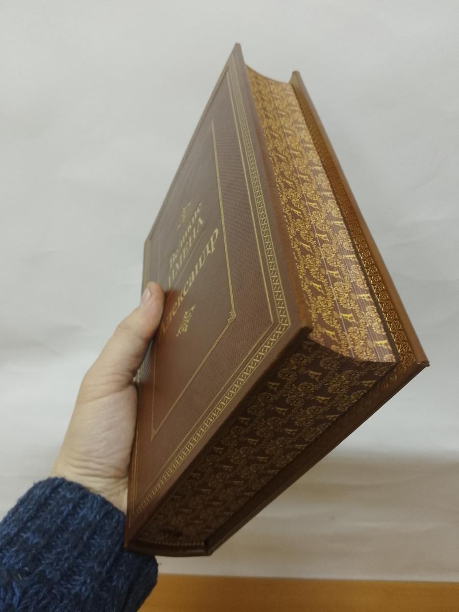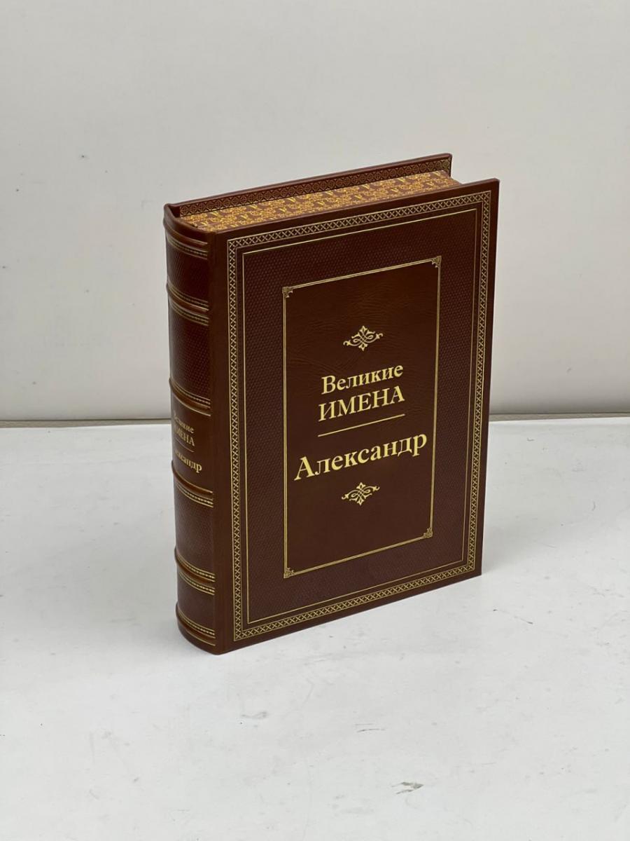 Книга подарочная в кожаном переплете "Александр. великие имена" ручной работы с окрашенным в тон обрезом и дубляжами на форзацах. Переплет выполнен вручную.