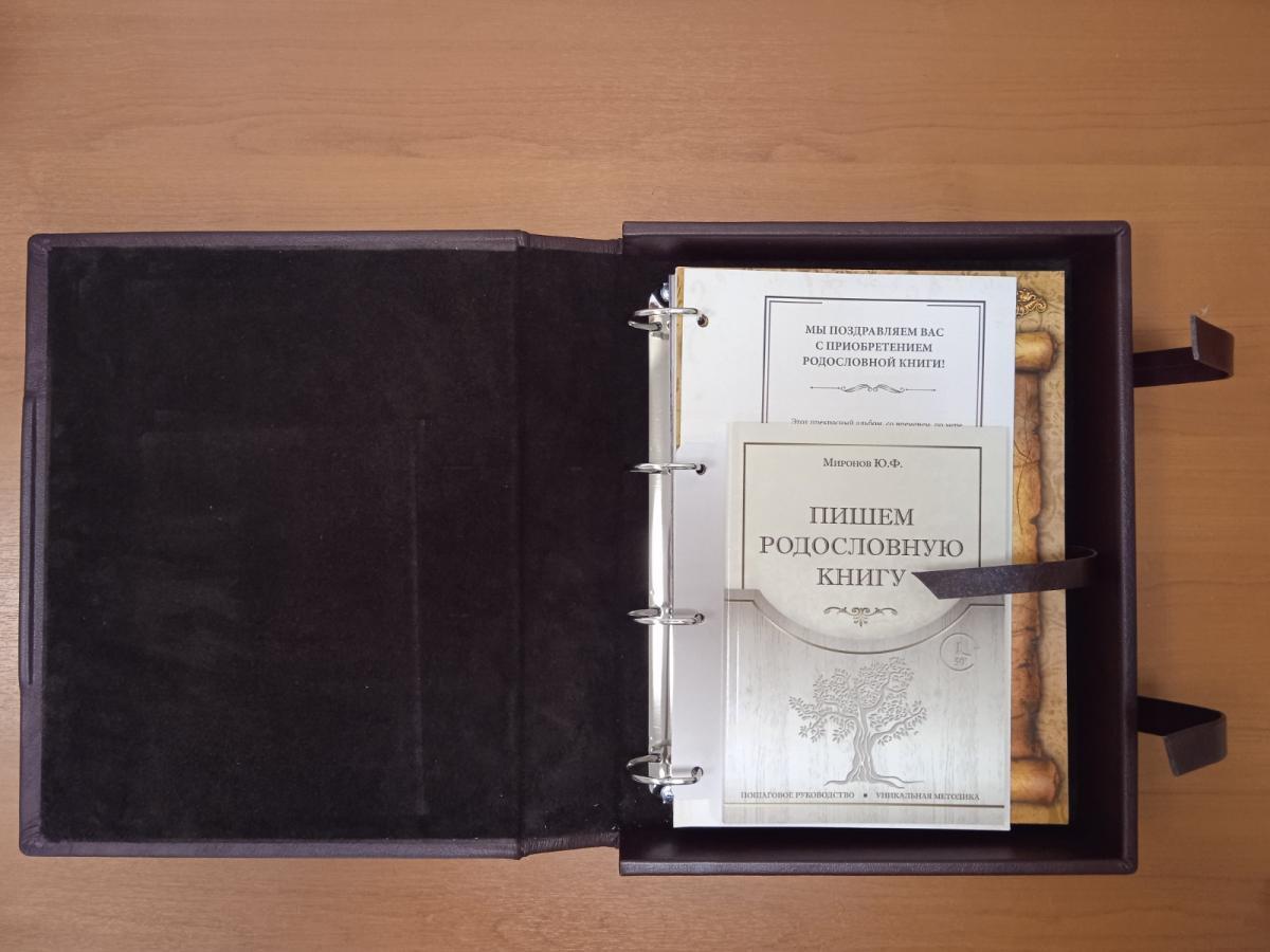 - Брошюра с описанием заполнения родословной книги и компакт-диск с файлами для печати дополнительных персональных листов книги, примерами родословной и программой по составлению генеалогического дерева.