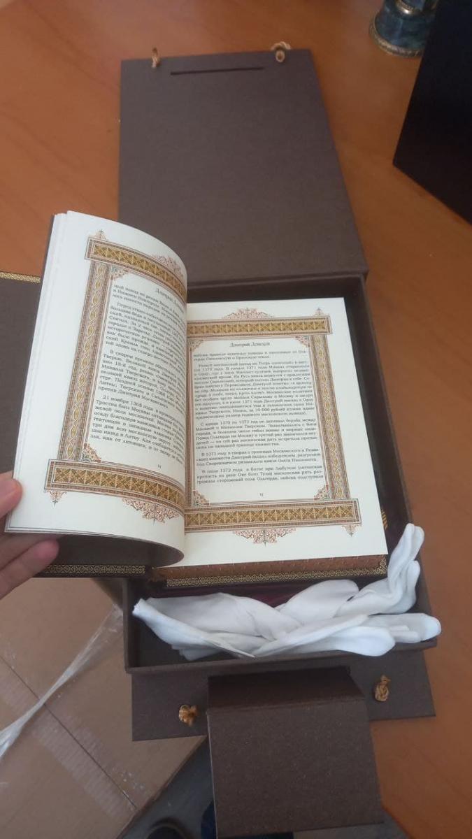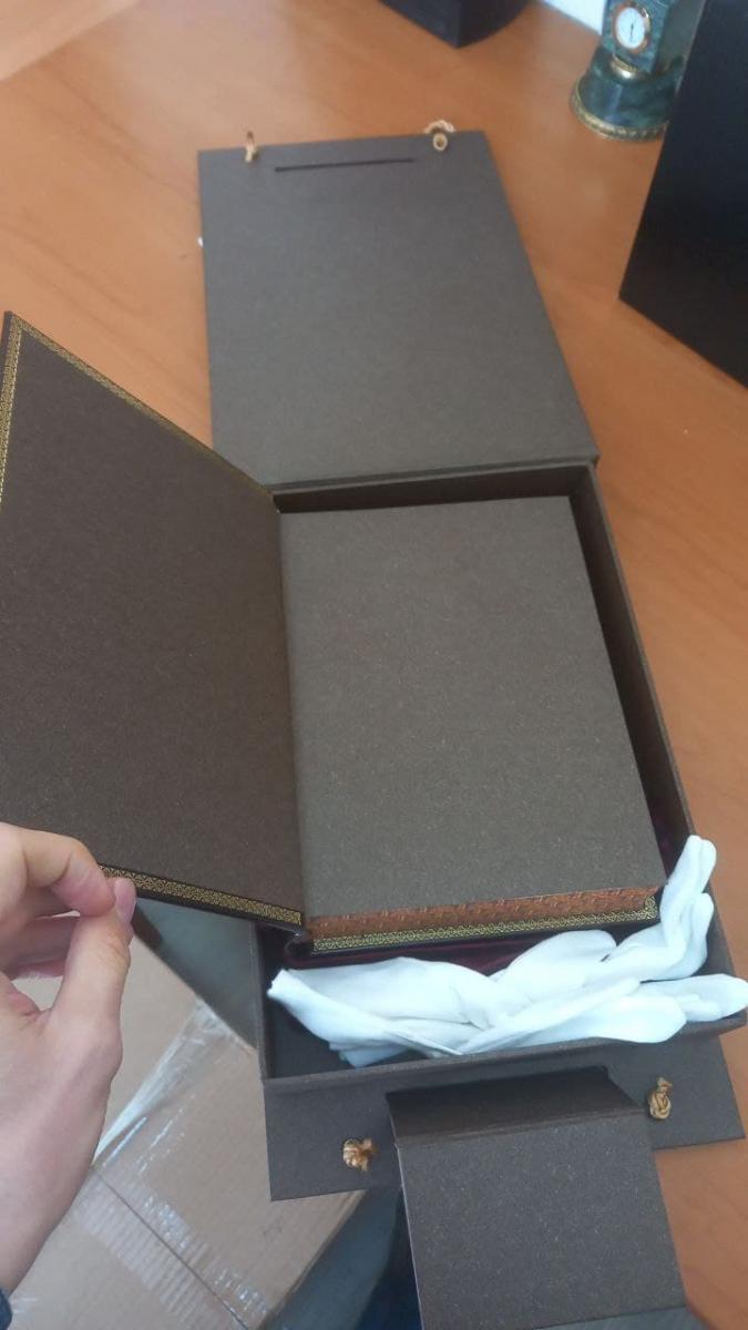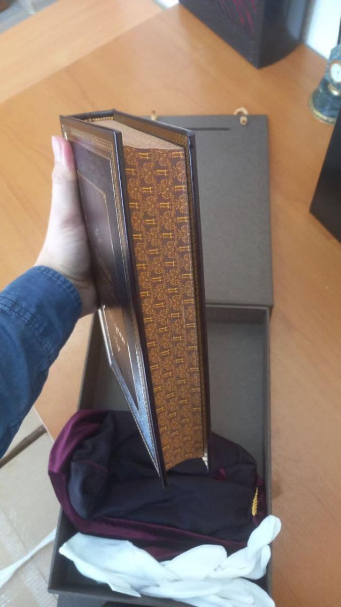 Книга выпущена в переплёте из натуральной кожи.