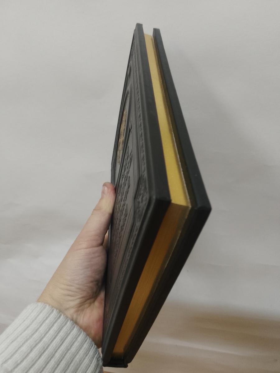 Обложка этой книги - результат мастерской ручной работы. Натуральная кожа, окруженная трехсторонним золотым обрезом, окутана изысканным 3D фольгированным тиснением, которое приобрело оттенок золотой пасты, создавая впечатление настоящего произведения искусства.