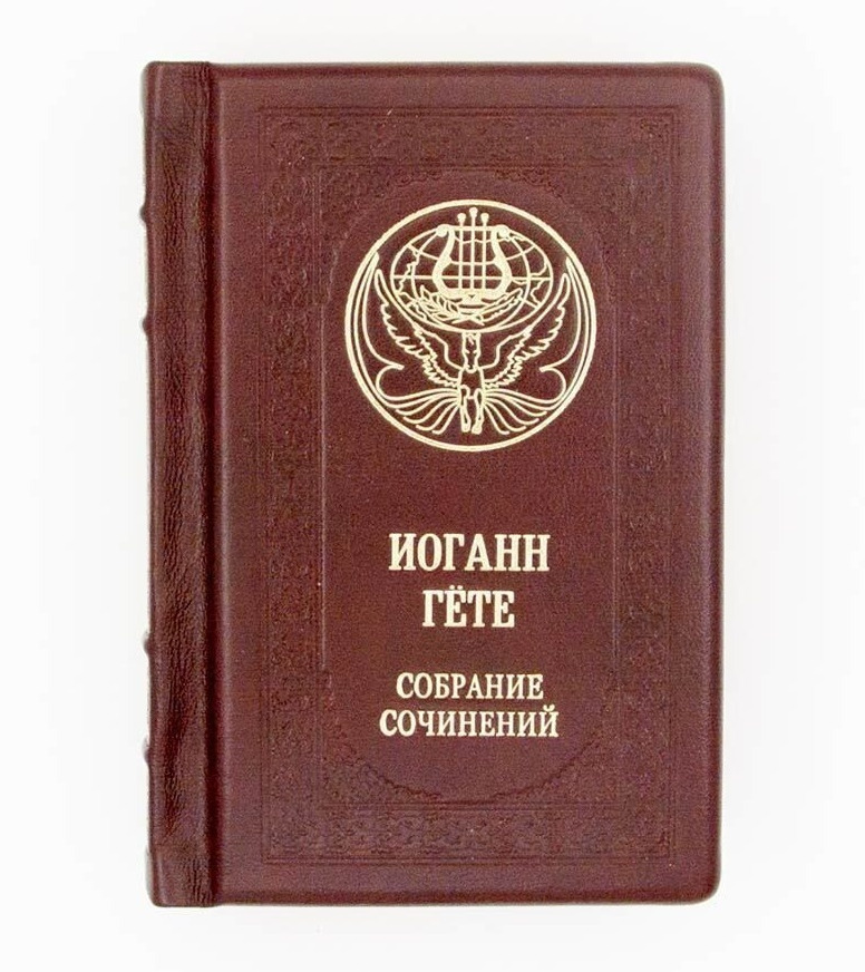 Книга оформлена в роскошном кожаном переплете ручной работы с изысканным золотым тиснением, что подчеркивает ее статус и ценность. Крашеный обрез придает изданию дополнительный шарм и элегантность, делая его идеальным подарком для ценителей литературы и поклонников творчества Гете.