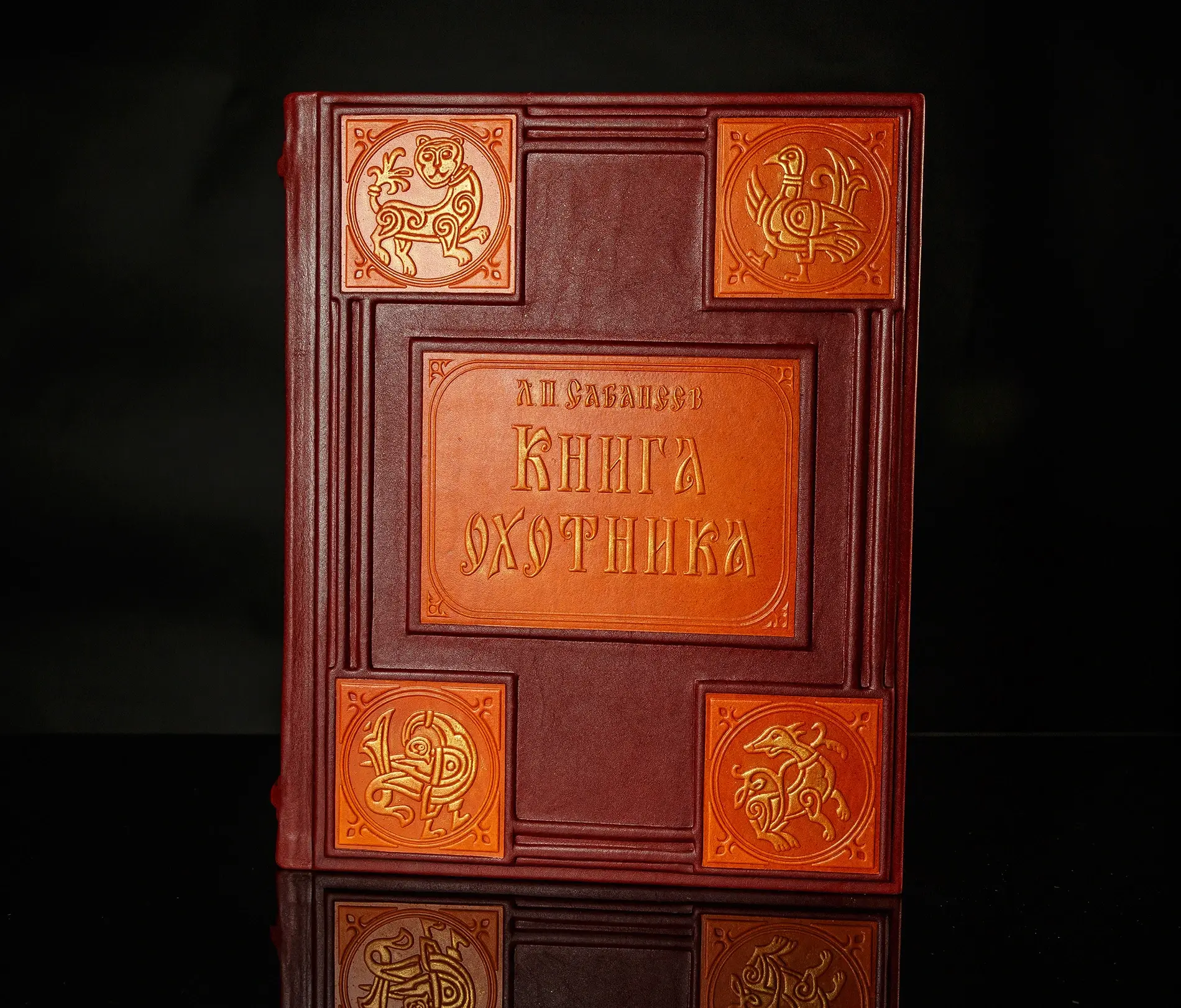 Подарочная книга "Книга охотника" Л.П. Сабанеева в кожаном переплете - это истинный шедевр, выполненный из мягкой натуральной кожи. Обложка украшена барельефным тиснением из кожи различных оттенков, что придает ей особую привлекательность. Корешок книги выделен стильными бинтами, подчеркивающими ее элегантность. Издание напечатано на высококачественной кремовой бумаге, что позволяет в полной мере насладиться великолепными иллюстрациями. Текст набран шрифтом, напоминающим стиль XIX века, что создает атмосферу исторической достоверности. Дизайн переплета разработан талантливым художником Олегом Жданюком.