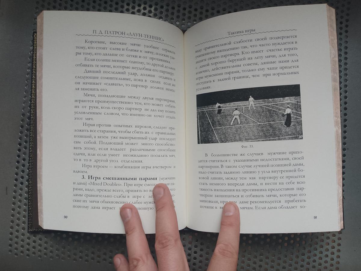 Оформление книги выполнено в лучших традициях переплетного искусства XIX века. Оригинальный кожаный переплет ручной работы, обрез страниц с художественным оформлением и шелковым ляссе. Это эксклюзивное издание станет прекрасным подарком для всех любителей большого тенниса и ценителей книжного искусства.