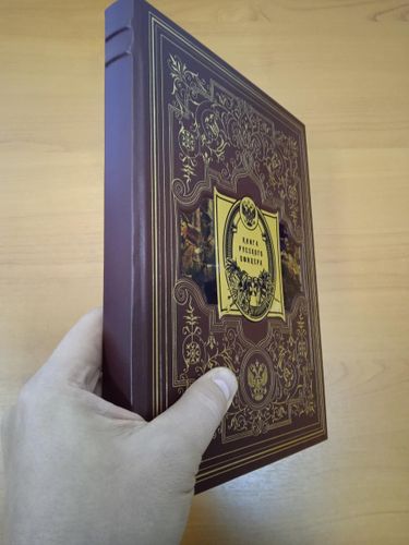 Издание представлено в оригинальной подарочной коробке с красивым золотым и блинтовым тиснением, художественной металлической вставкой и переплетным материалом обрезом, окрашенным в тон. Переплет изготовлен из цельной кожи вручную, а бумага высокого качества сопровождается яркими иллюстрациями и ляссе. "Книга русского офицера" - это не только увлекательное чтение, но и ценный источник информации для всех, кто интересуется военной историей России.