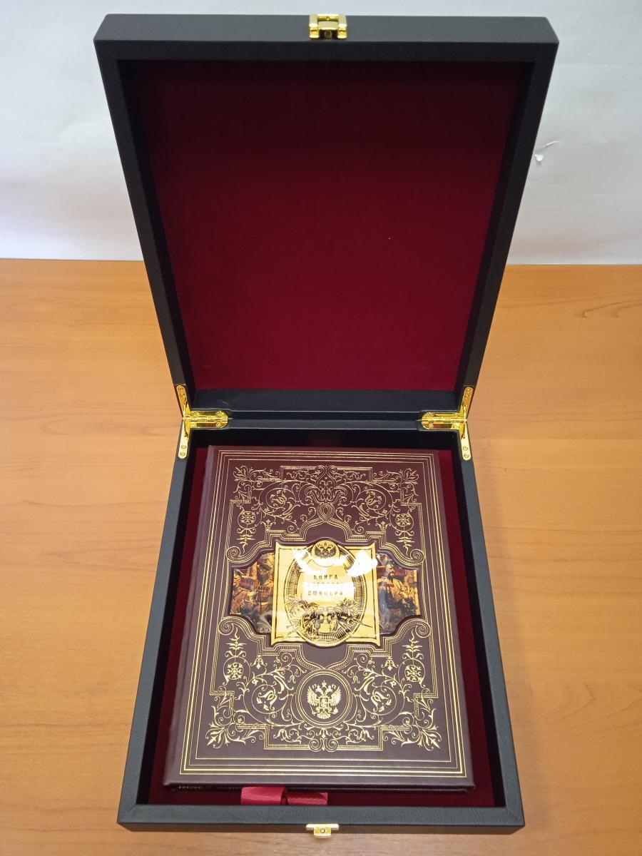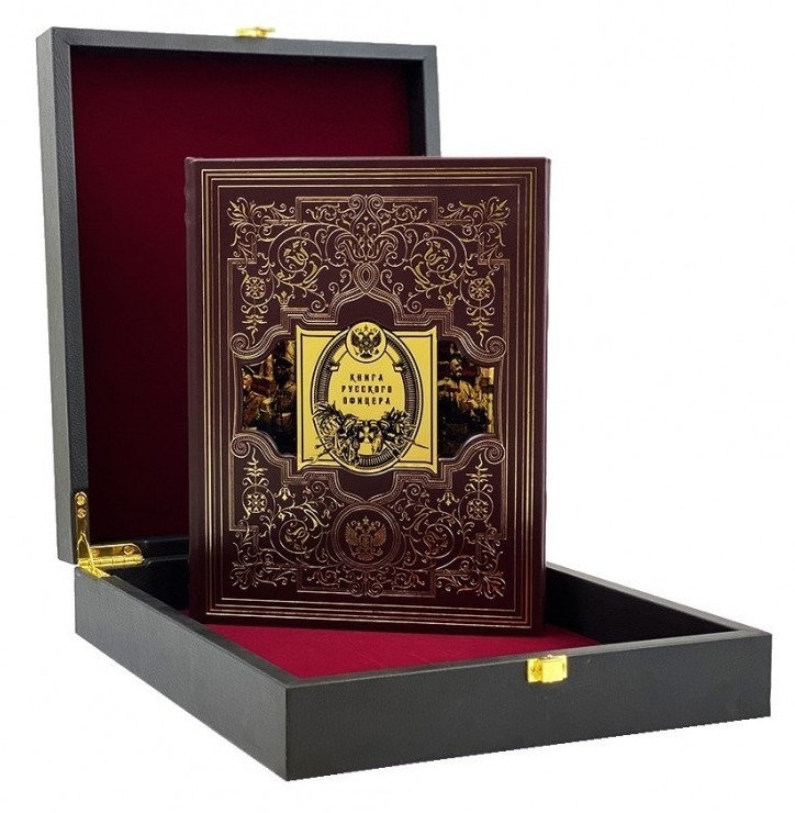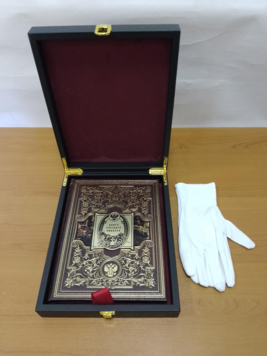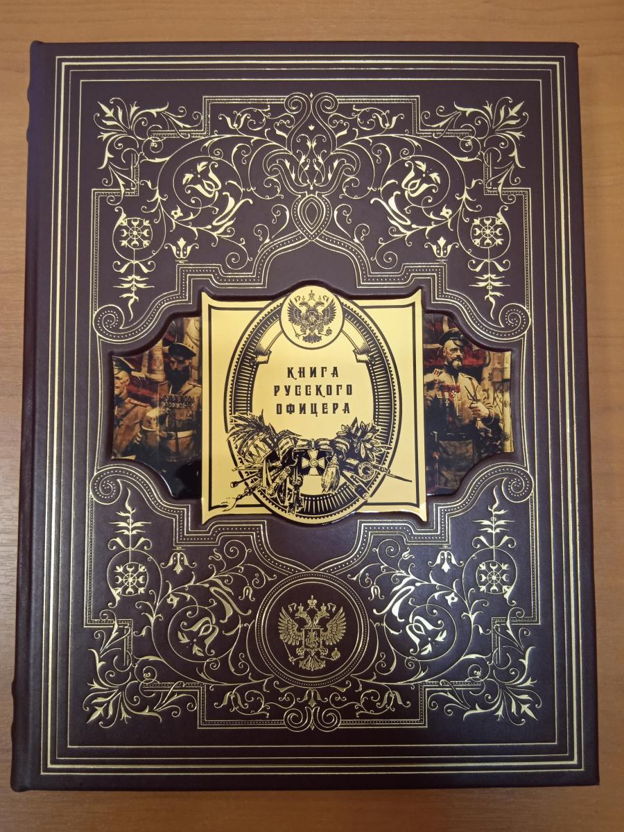 Издание представлено в оригинальной подарочной коробке с красивым золотым и блинтовым тиснением, художественной металлической вставкой и переплетным материалом обрезом, окрашенным в тон. Переплет изготовлен из цельной кожи вручную, а бумага высокого качества сопровождается яркими иллюстрациями и ляссе. "Книга русского офицера" - это не только увлекательное чтение, но и ценный источник информации для всех, кто интересуется военной историей России.