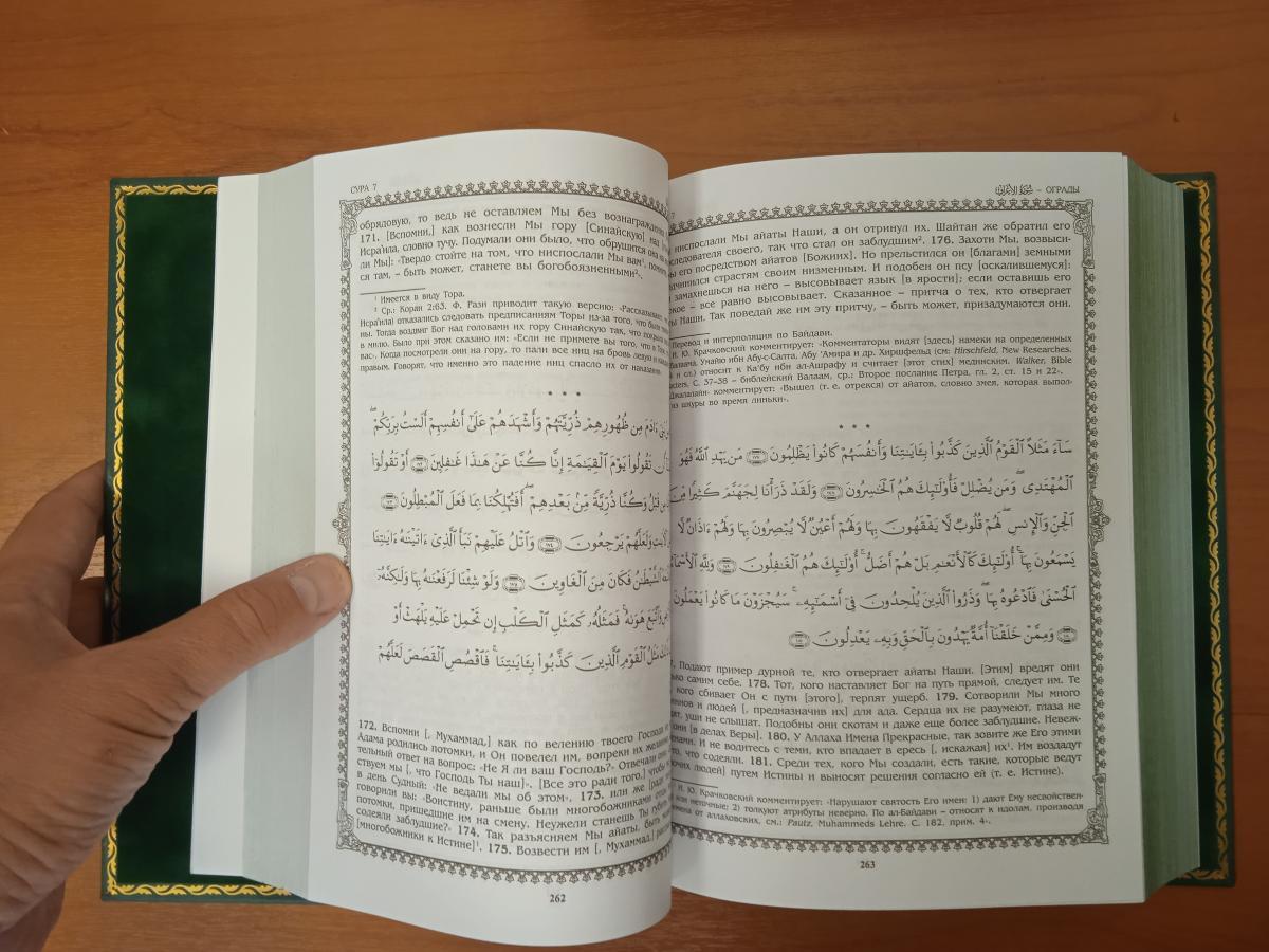 "Коран" - священная книга мусульман, которая содержит основные принципы и учения ислама. Книга состоит из 114 глав (сур), каждая из которых содержит версеты (аяты), написанные на арабском языке.