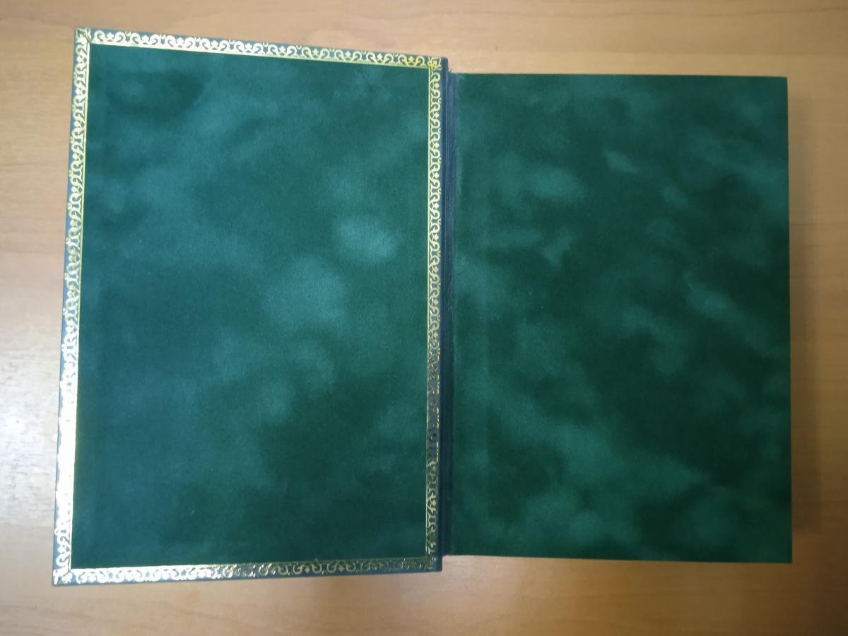 - книжный блок страниц вручную отшлифован и тонирован с нанесением золотого орнамента,