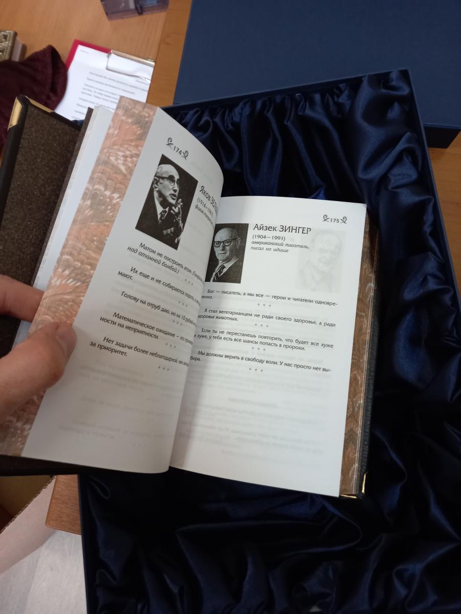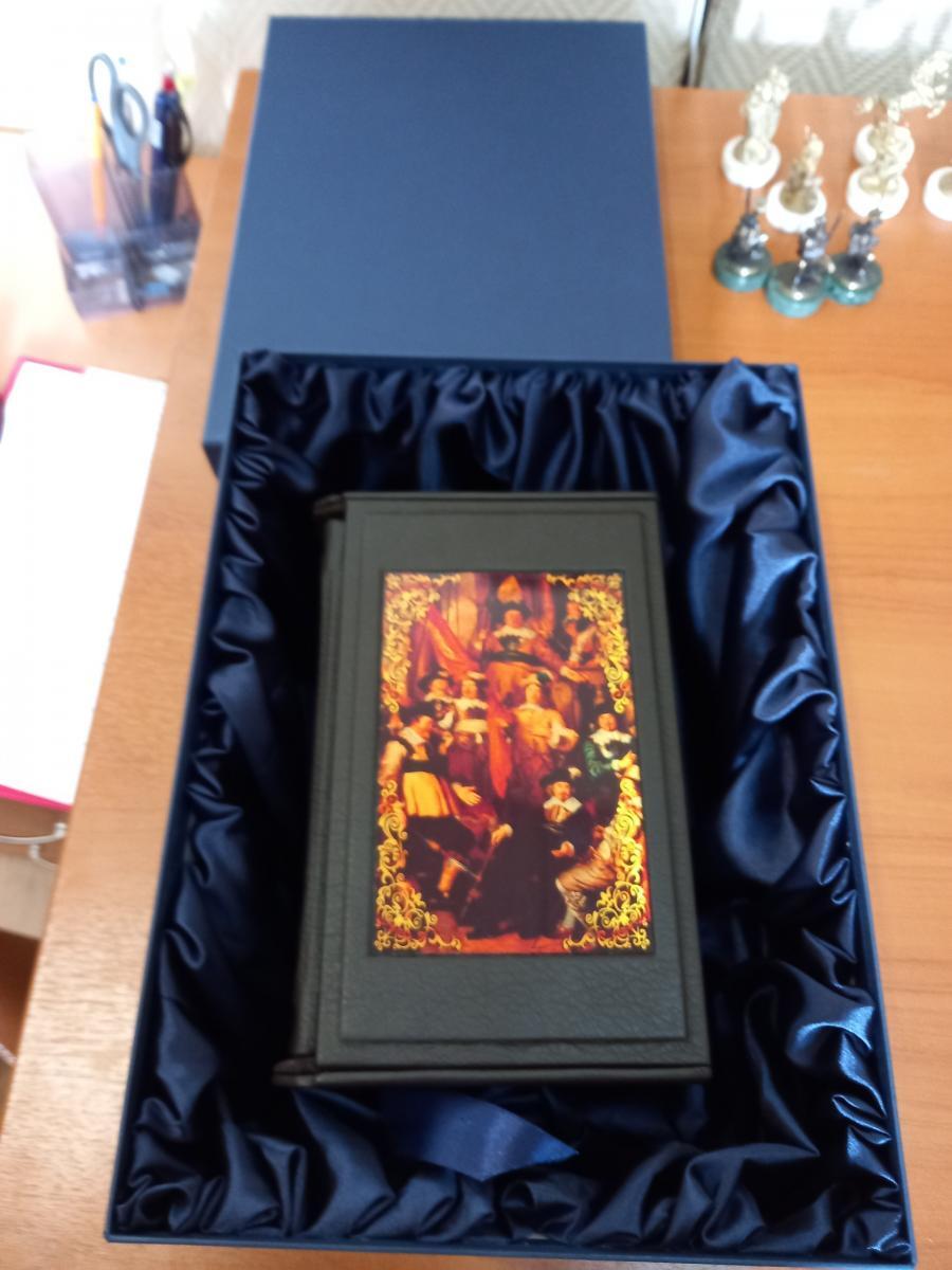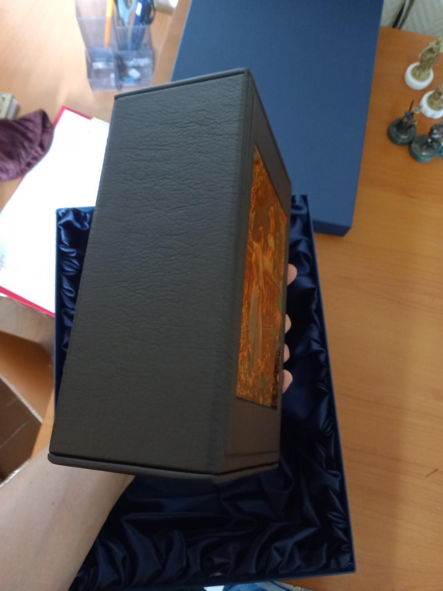 Книга является эксклюзивным изданием: тисненый кожаный переплет ручной работы с художественными вставками, металлические уголки, сертификат. Упакована в кожаную подарочную коробку с художественными накладками.