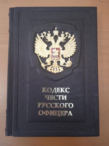 Эта книга в кожаном переплете с тиснением "Кодекс чести Русского Офицера" станет прекрасным подарком настоящему офицеру, человеку увлекающемуся военной историей. Издание имеет кожаный переплет с художественным тиснением. Довершает дизайн обложки литой герб с двуглавым орлом, роспись цветной эмалью. Срез страниц тонирован золотом. Содержание дополнено иллюстрациями к тексту. Книга имеет благородный стиль и придется по нраву ценителю качественных дорогих книг.