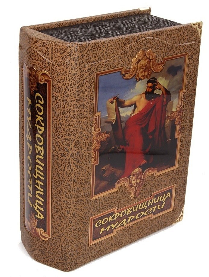 Книга является эксклюзивным изданием: тисненый кожаный переплет ручной работы с художественными вставками, металлические уголки, сертификат.