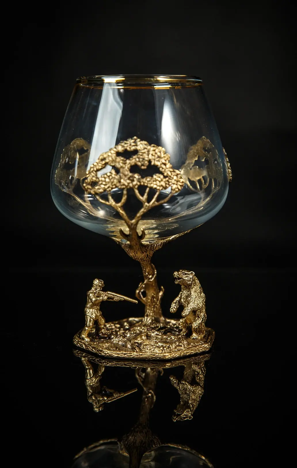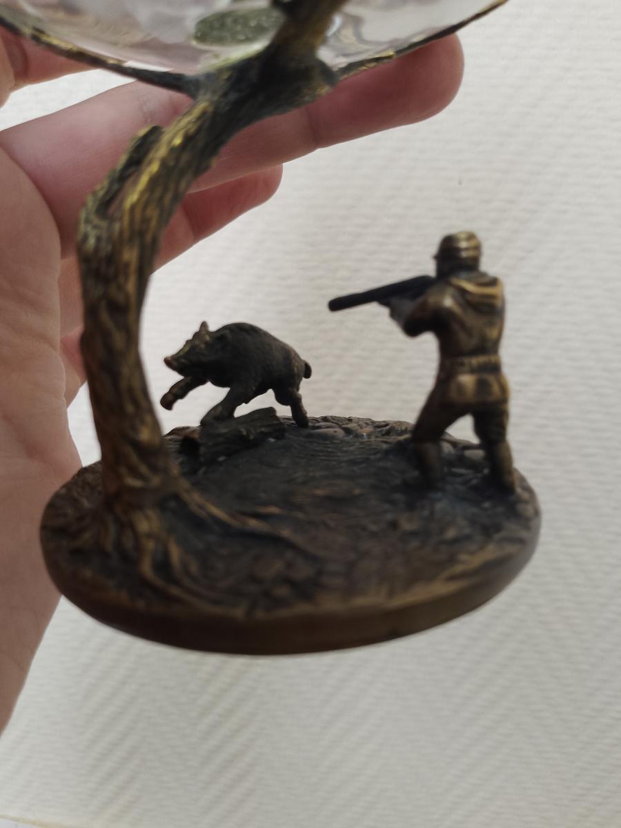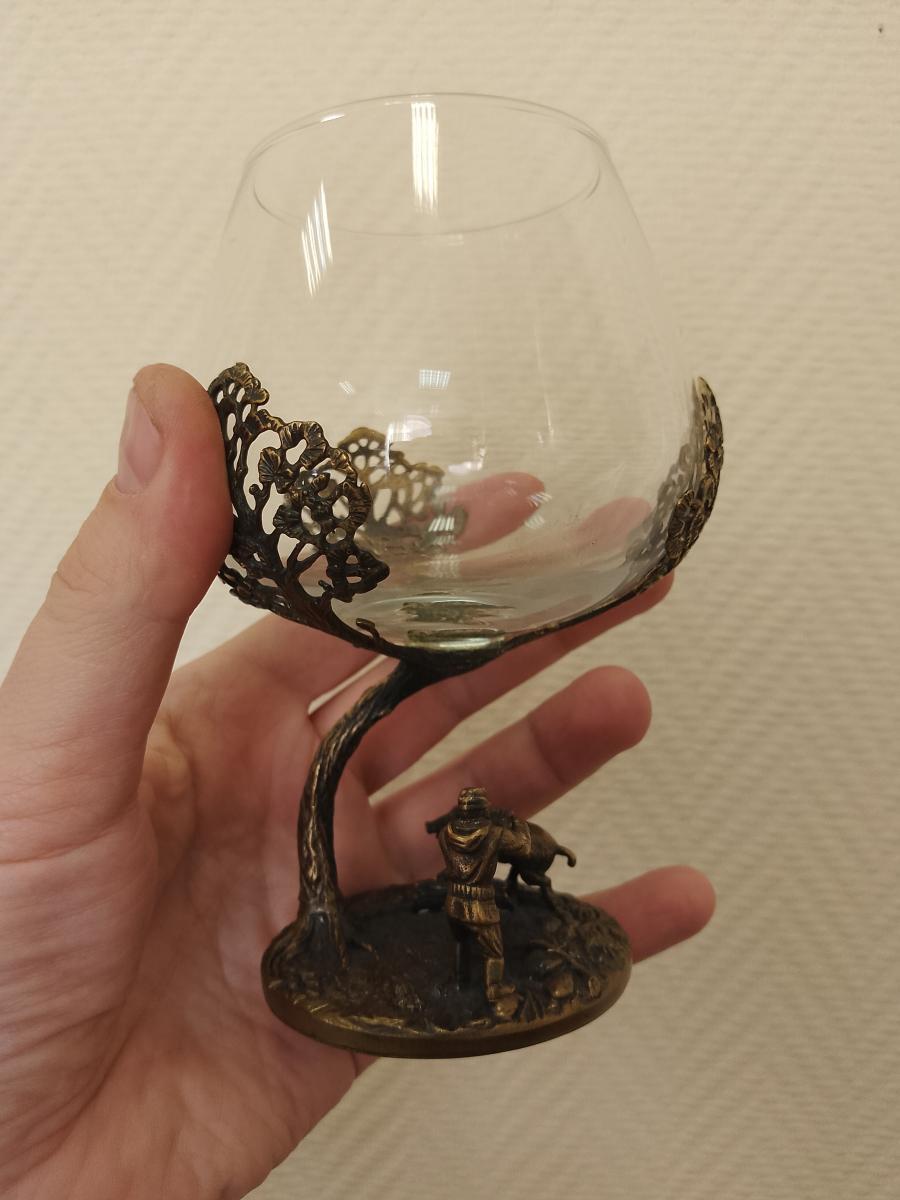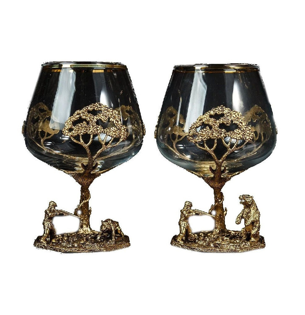 2. Два бокала для коньяка с сюжетами охоты: Эти бокалы - настоящие произведения искусства, воплощающие в себе атмосферу охоты на кабана и медведя. Рельефные изображения создают ощущение движения и динамичности, принося внимание к мельчайшим деталям.