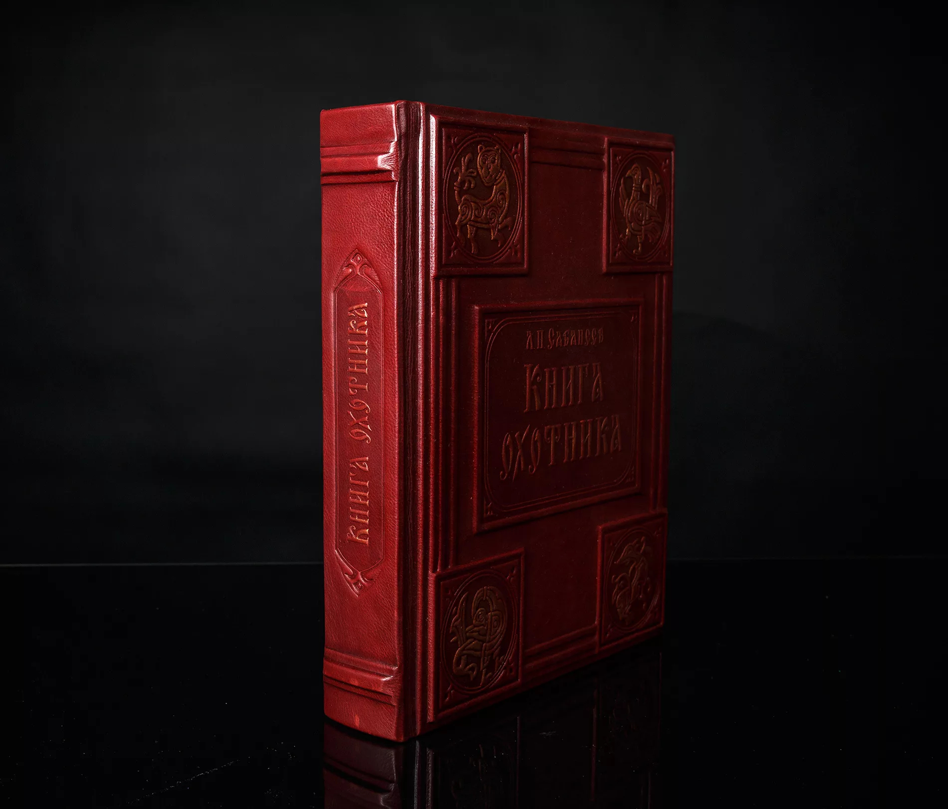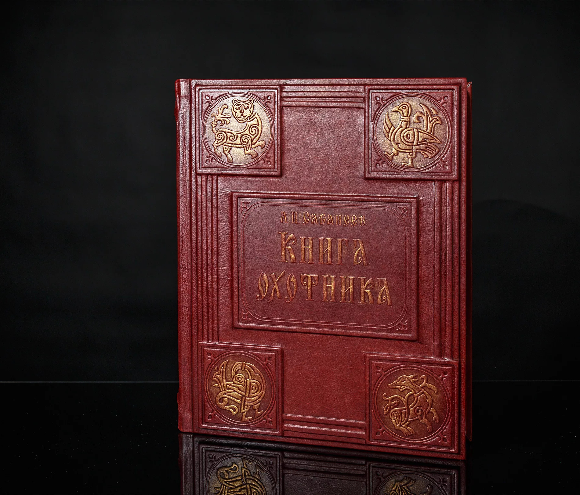 В центре композиции – легендарный труд Л.П. Сабанеева «Русская охота», признанный эталон охотничьей литературы. Это переиздание тщательно выверено по второму прижизненному изданию, гарантируя абсолютную точность и полноту авторского замысла. Но главная его ценность – в роскошном, полностью ручном переплёте из натуральной кожи высшего сорта. Глубокое блинтовое тиснение придает обложке благородный, тактильный узор без использования фольги, подчеркивая классический стиль и сдержанную элегантность. Корешок украшен рельефными бинтами, которые не только усиливают эстетику, но и придают книге монументальность и весомость.