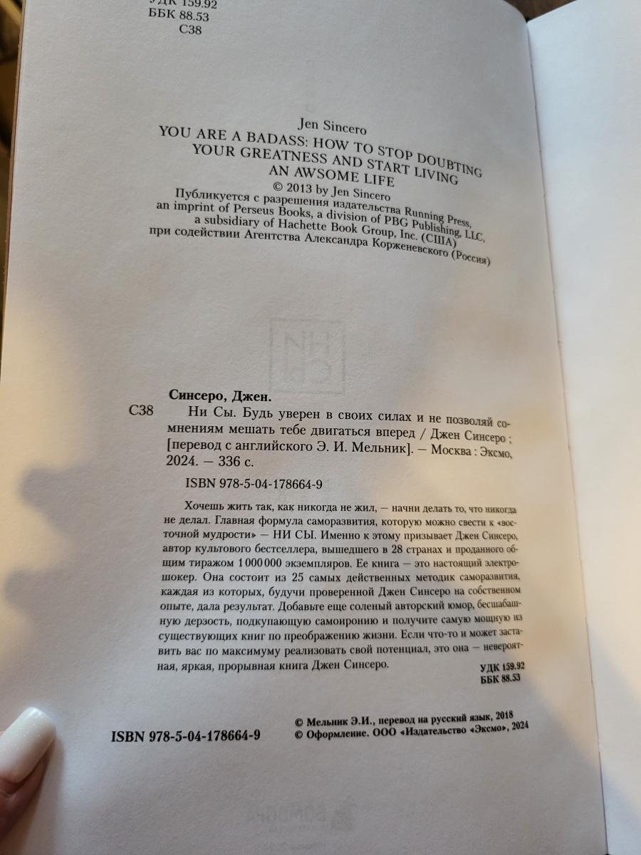 Это подарочное издание, оформленное в переплете ручной работы из натуральной кожи с трехсторонним золотым обрезом, представляет собой уникальный сборник эффективных методик саморазвития. Написанная с авторским юмором, дерзостью и самоиронией, книга вдохновит вас на смелые шаги и научит делать то, что вы никогда не делали, следуя мудрости "НИ СЫ: будь уверен в своих силах и не позволяй сомнениям мешать тебе двигаться вперед".