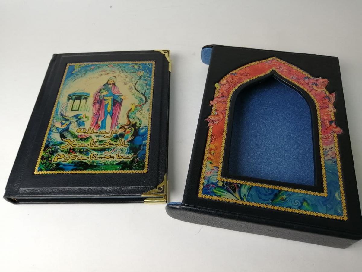 Издание и подарочный футляр оформлены в едином стиле – кожаный переплет, художественные вставки, тиснение.