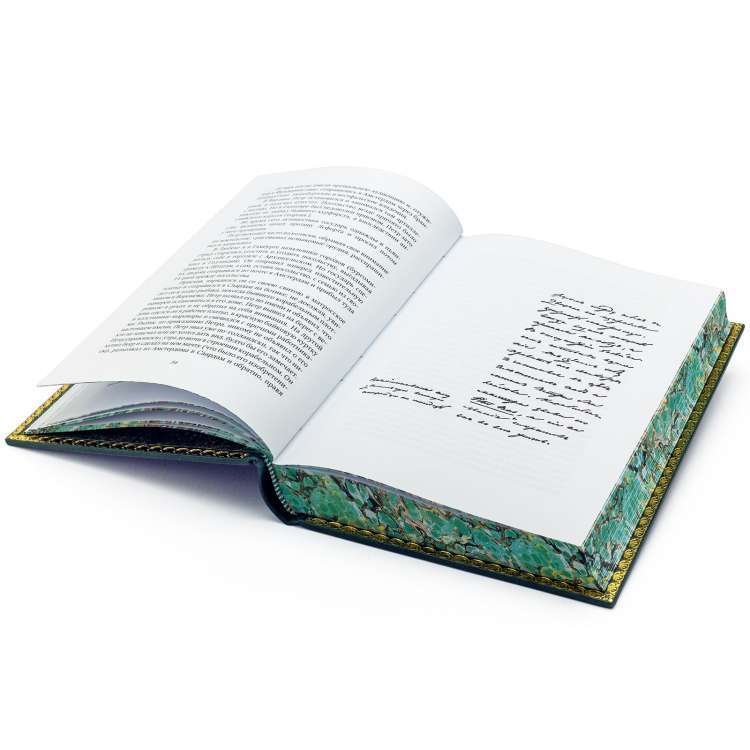 кожаный переплёт премиального качества с объёмным золотым тиснением;