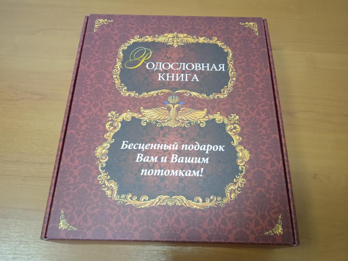 К каждой книге прилагается ПОДАРОЧНЫЙ СЕРТИФИКАТ на БЕСПЛАТНОЕ оформление листов книги, генеалогического древа и электронной 3D родословной книги. Их оформят дизайнеры "Российского центра родословия".