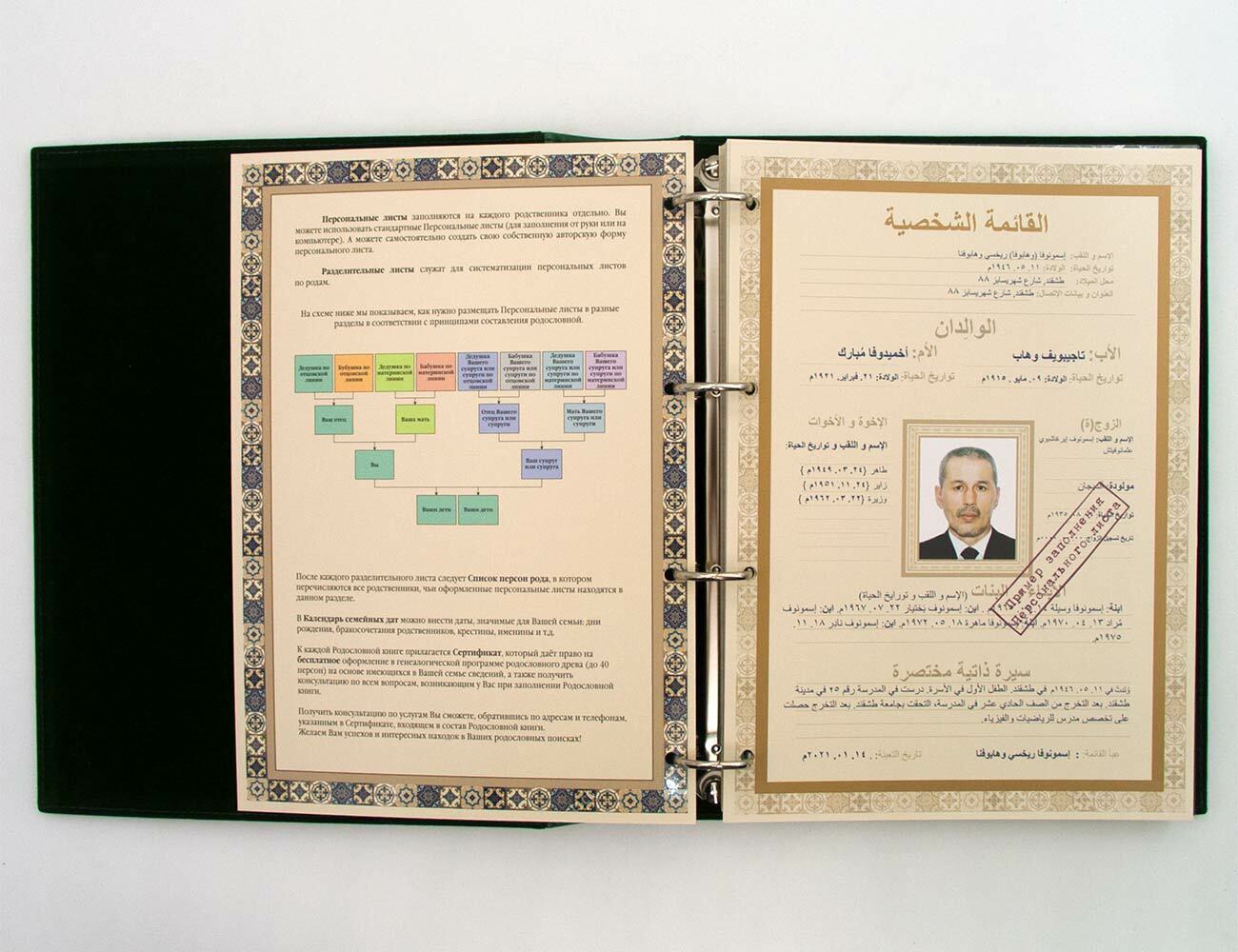 Эксклюзивный художественный блок: Внутри Вас ждет уникальный блок из 70 листов, тщательно разработанный специально с учётом мусульманских традиций. Страницы, предназначенные для самостоятельного заполнения, представлены на двух языках – арабском и русском, что делает процесс ведения родословной еще более глубоким и аутентичным.