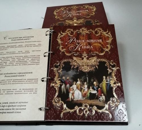 - Также к Родословной книге прилагается подарочный сертификат на бесплатное оформление родословного древа (схематично), объединяющего до 40 родственников, консультации специалистов по генеалогическим исследованиям.
