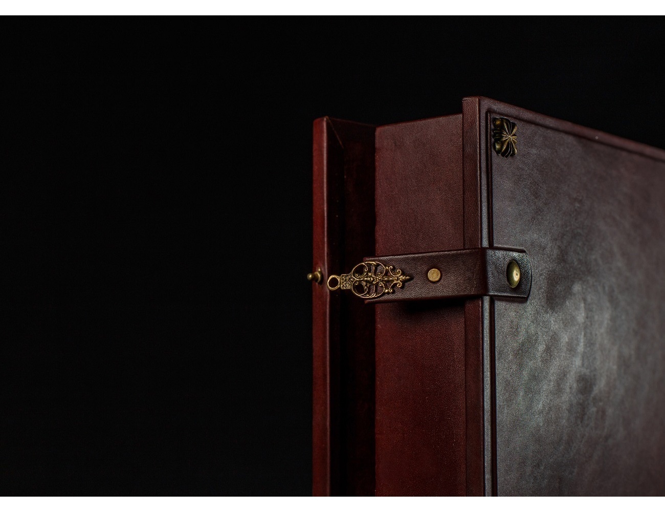 На выбор предлагаются два авторских внутренних блока: «Барокко» (170 страниц) или «Модерн» (216 страниц), разработанные нашими дизайнерами. Выбор блока не влияет на стоимость издания. Доступны три благородных оттенка натуральной кожи: глубокий зеленый, теплый коричневый и насыщенный вишневый. Важно отметить, что каждый экземпляр уникален: естественный рисунок и природные характеристики кожи подчеркивают ее подлинность и статусность, делая Вашу книгу неповторимой.
