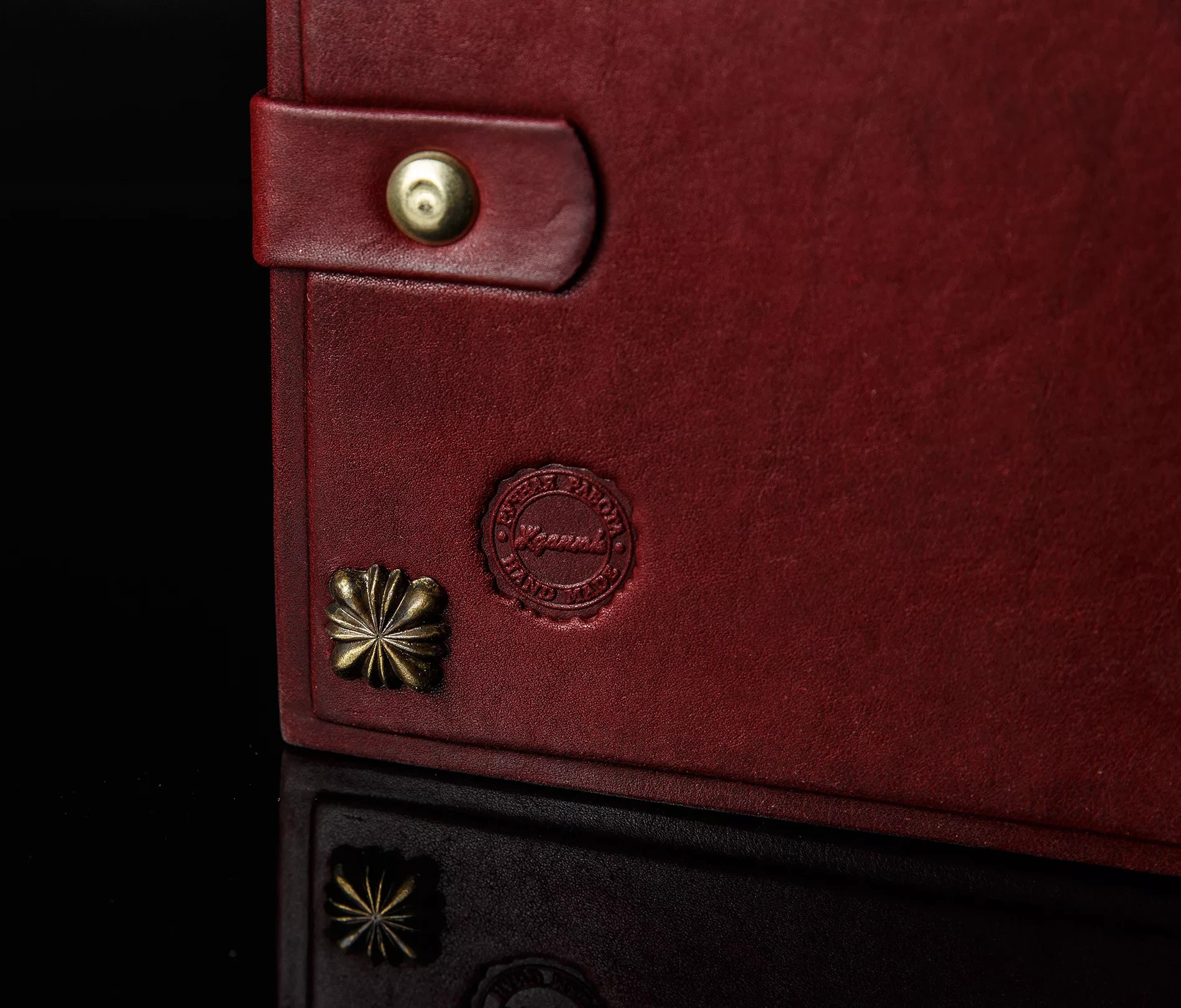 Внутри футляра скрыт надежный D-образный кольцевой механизм, выполненный в благородном цвете "старое золото". Он обеспечивает не только безупречное хранение, но и легкость добавления, удаления или замены листов, позволяя Вашей истории расти и развиваться вместе с Вашей семьей. Продуманный плетеный кожаный ремешок облегчает бережное извлечение и перемещение даже самого объемного блока, подчеркивая внимание к деталям и удобству использования.