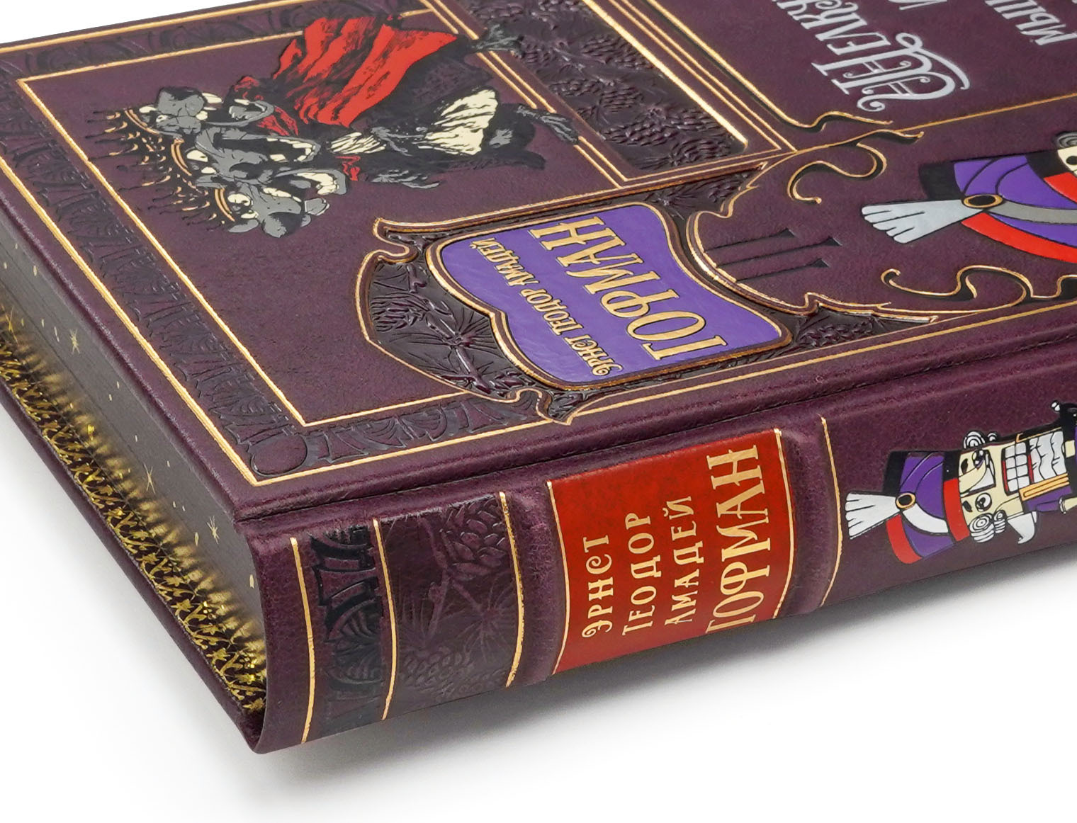 трёхсторонний обрез, тонированный и украшенный золотым узором — роскошный акцент, придающий книге статус коллекционного издания;