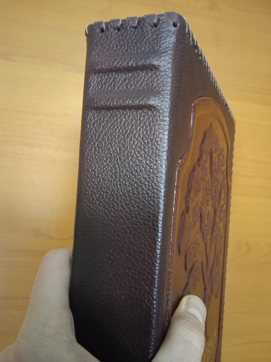 Книга скреплена механизмом на кольцах, что позволяет легко вставлять или вынимать страницы, легко их переворачивать.