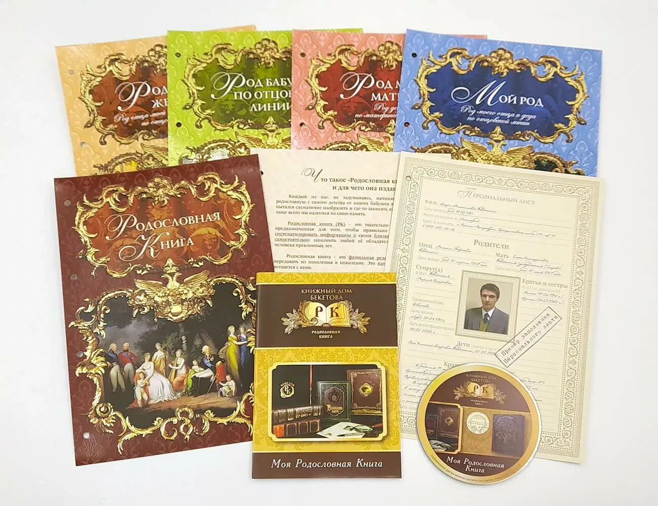 - Брошюра с описанием заполнения родословной книги и компакт-диск с файлами для печати дополнительных персональных листов книги, примерами родословной и программой по составлению генеалогического дерева.
