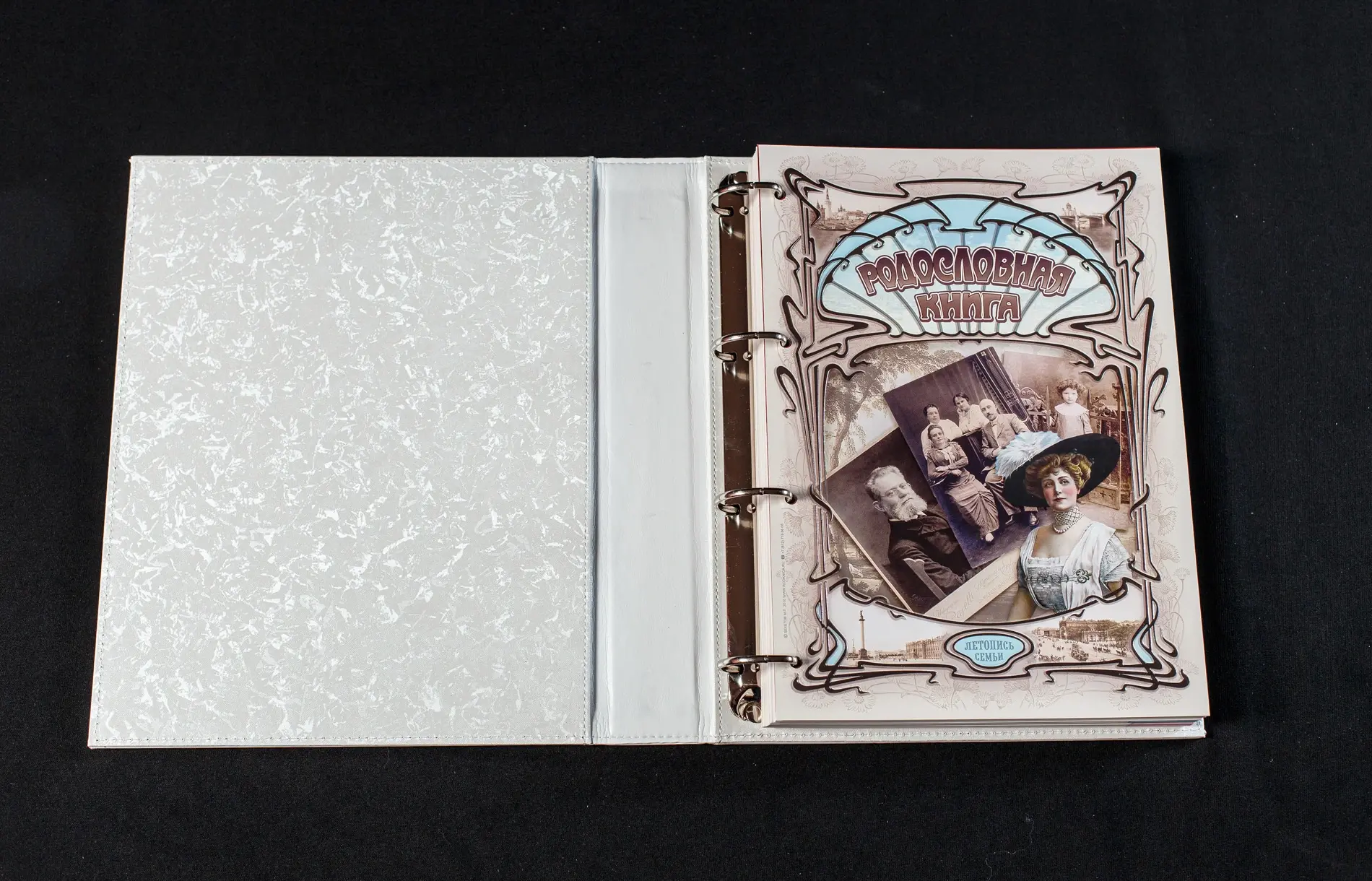 Семейная родословная книга «Свадебная - Серебро» — это семейный фотоальбом с биографиями и интересными событиями из жизни семьи. В родословную книгу можно внести все ваше генеалогическое древо на множество поколений назад.