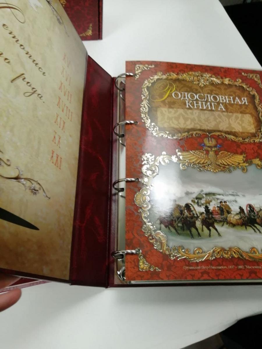 К каждой книге прилагается ПОДАРОЧНЫЙ СЕРТИФИКАТ на БЕСПЛАТНОЕоформление листов книги, генеалогического древа и электронной 3D родословной книги. Их оформят дизайнеры "Российского центра родословия".