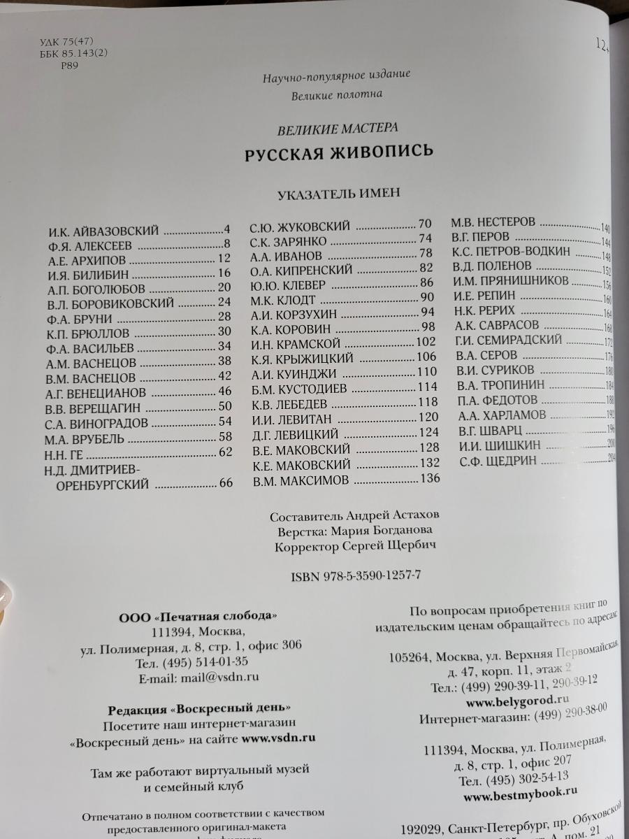 Эта книга представляет собой уникальный обзор русской живописи, включающий произведения русских художников и отображающий все стили и направления. Она идеально подходит для любителей искусства, которые хотят познакомиться с творчеством русских художников и их произведениями. Книга "Шедевры Русской живописи" является обновленным и расширенным изданием прекрасного альбома, который основан на тексте П. П. Гнедича.