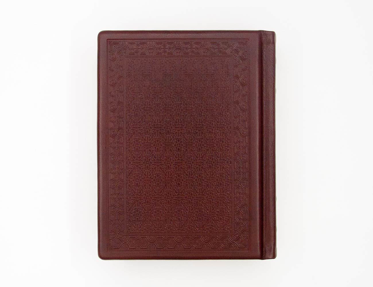 Эта книга — не просто текст, это произведение искусства, созданное для истинных ценителей. Футляр, служащий достойной оправой, выполнен из прочной основы и вручную обтянут натуральной кожей высочайшей выделки. Его украшает изысканная художественная вставка из патинированной меди, придающая изданию благородный старинный вид. Переплет и футляр сияют сложным конгревным тиснением и акцентами из золотой фольги, создающими объем и игру света. Искусно окрашенный вручную обрез книжного блока и шелковое ляссе довершают этот безупречный образ, подчеркивая исключительный статус и внимание к каждой детали.